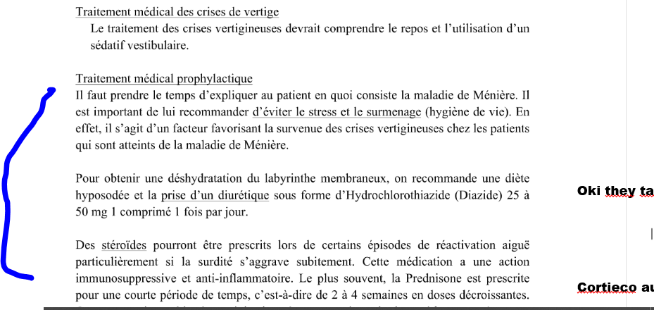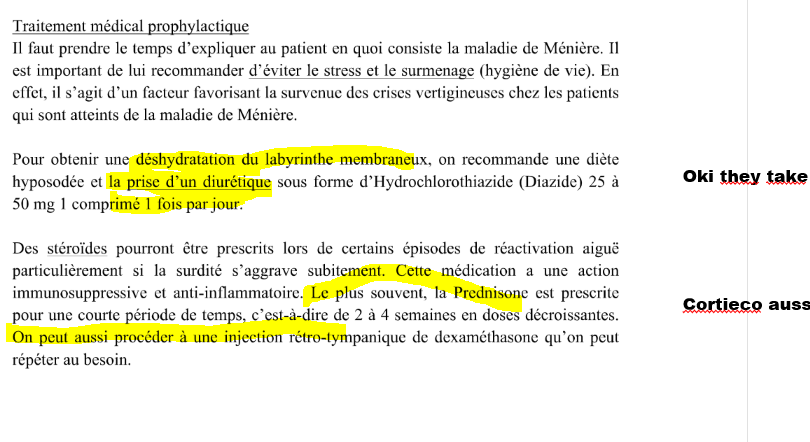 quel médication prophylactique peut etre prescrite pour maladie de meniere