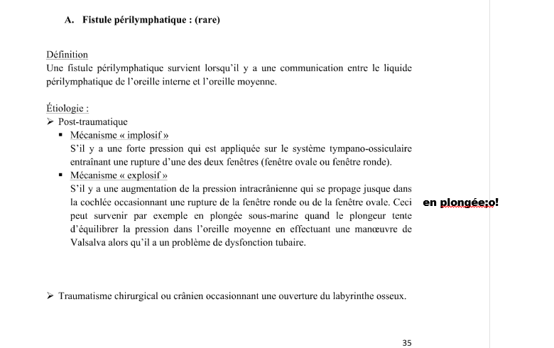 donne une situation déclencheur qui pourrait te faire penser à une fistule périlymphatique