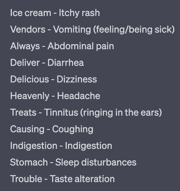 Coughing, itchy rash, sore mouth, may affect taste