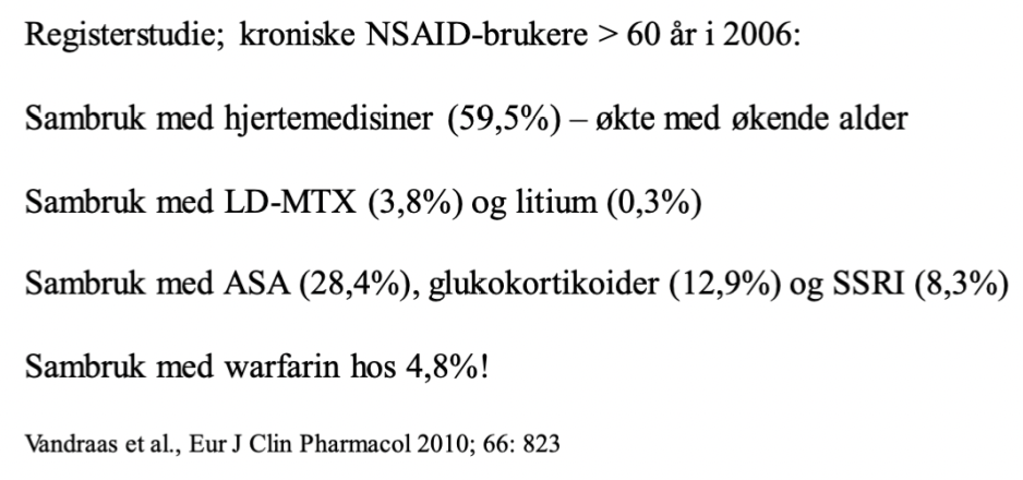 NSAIDs kan gi opphav til alvorlige interaksjoner, og potensialet for dette er stort blant de mest sårbare pasientene