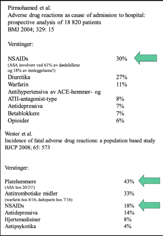 Bruk av NSAIDs (inkl. ASA) fører til mange dødsfall