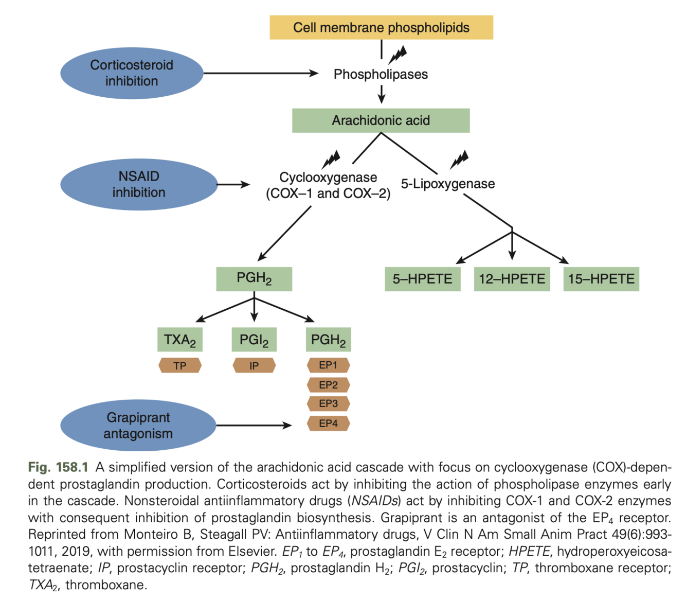act in cell membranes by inhibiting the expression of cyclo- oxygenase (COX) enzymes that are essential in the biosynthesis of prostaglandins