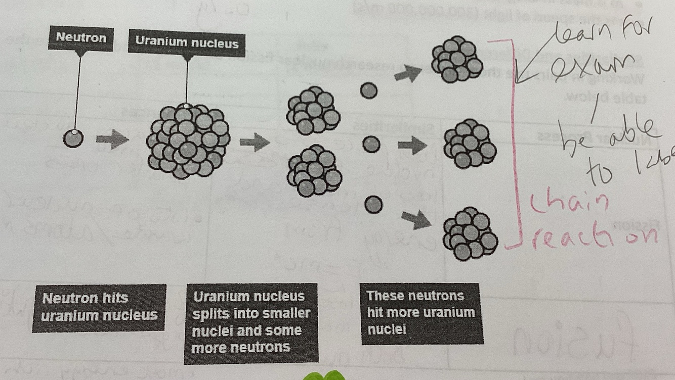 When a large unstable nucleus decays forming 2 lighter daughter nuclei, 3 neutrons and releases energy