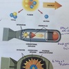 two light hydrogen nuclei join together to form a heavier helium nucleus and releases energy.