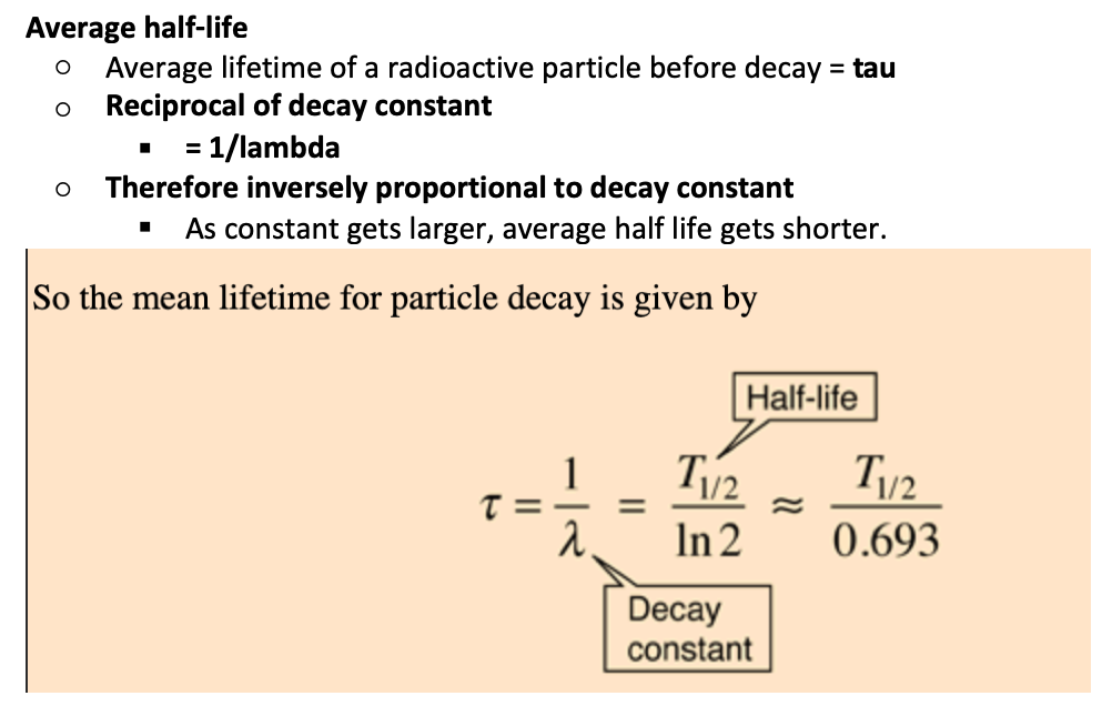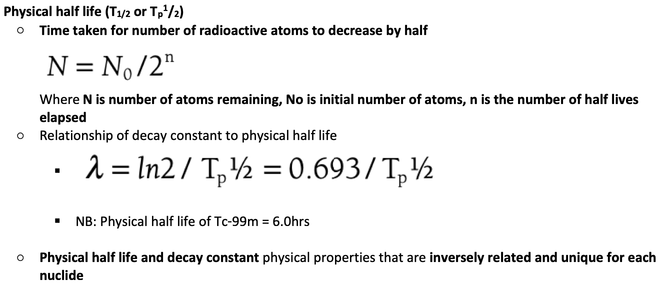 Define physical half-life, and how it relates to the DECAY CONSTANT