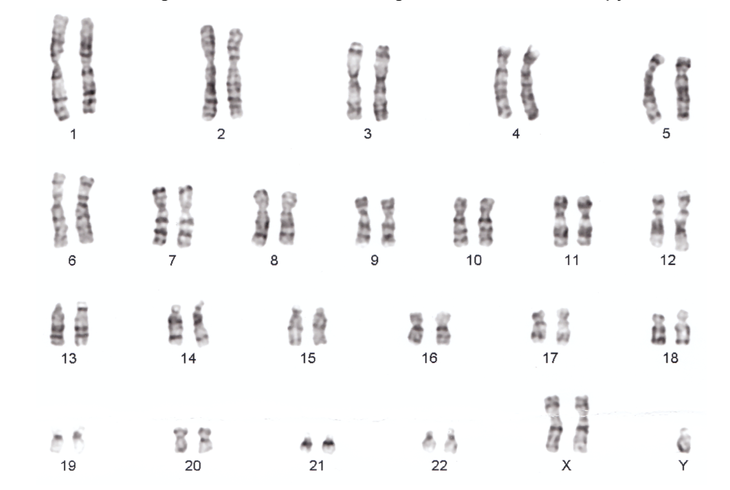 You can tell a person’s biological sex from a karyotype by looking at the 23rd pair of chromosomes (the sex chromosomes): females typically have two X chromosomes (XX), while males have one X and one Y chromosome (XY). A female karyotype is noted as 46,XX, and a male karyotype is 46,XY, indicating 22 pairs of autosomes and the specific sex chromosome pair. If a karyotype shows two X chromosomes and one Y (XXY), it indicates Klinefelter Syndrome, a genetic condition in individuals with male anatomy (due to the Y) but with an extra X chromosome, often leading to underdeveloped testes, infertility, and sometimes learning/behavioral issues, managed with hormone therapy.