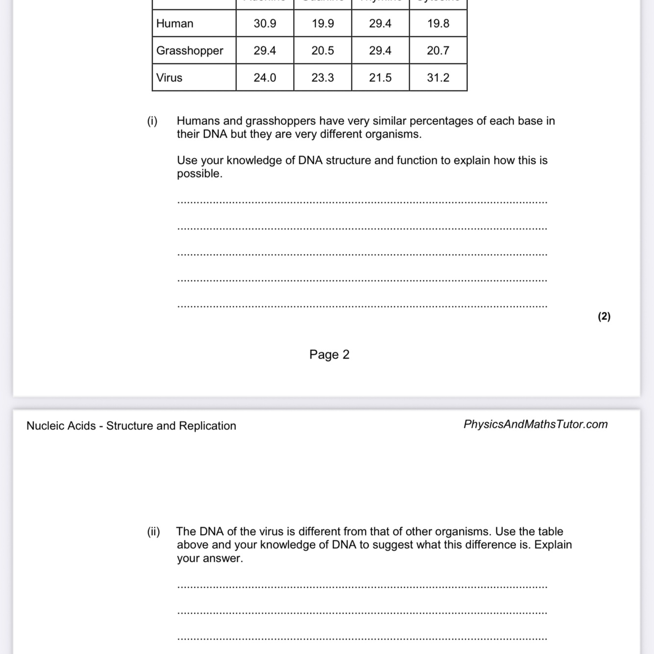 2. (So) no base pairing;