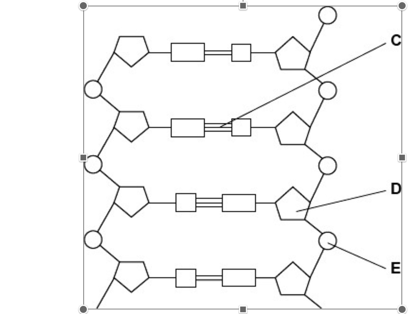 (Figure 1 shows) shape of the nucleotides is different / nucleotides aligned differently;