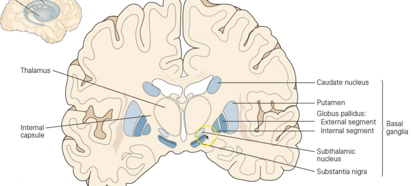 Cuáles son los componentes anatómicos de los núcleos de la base?