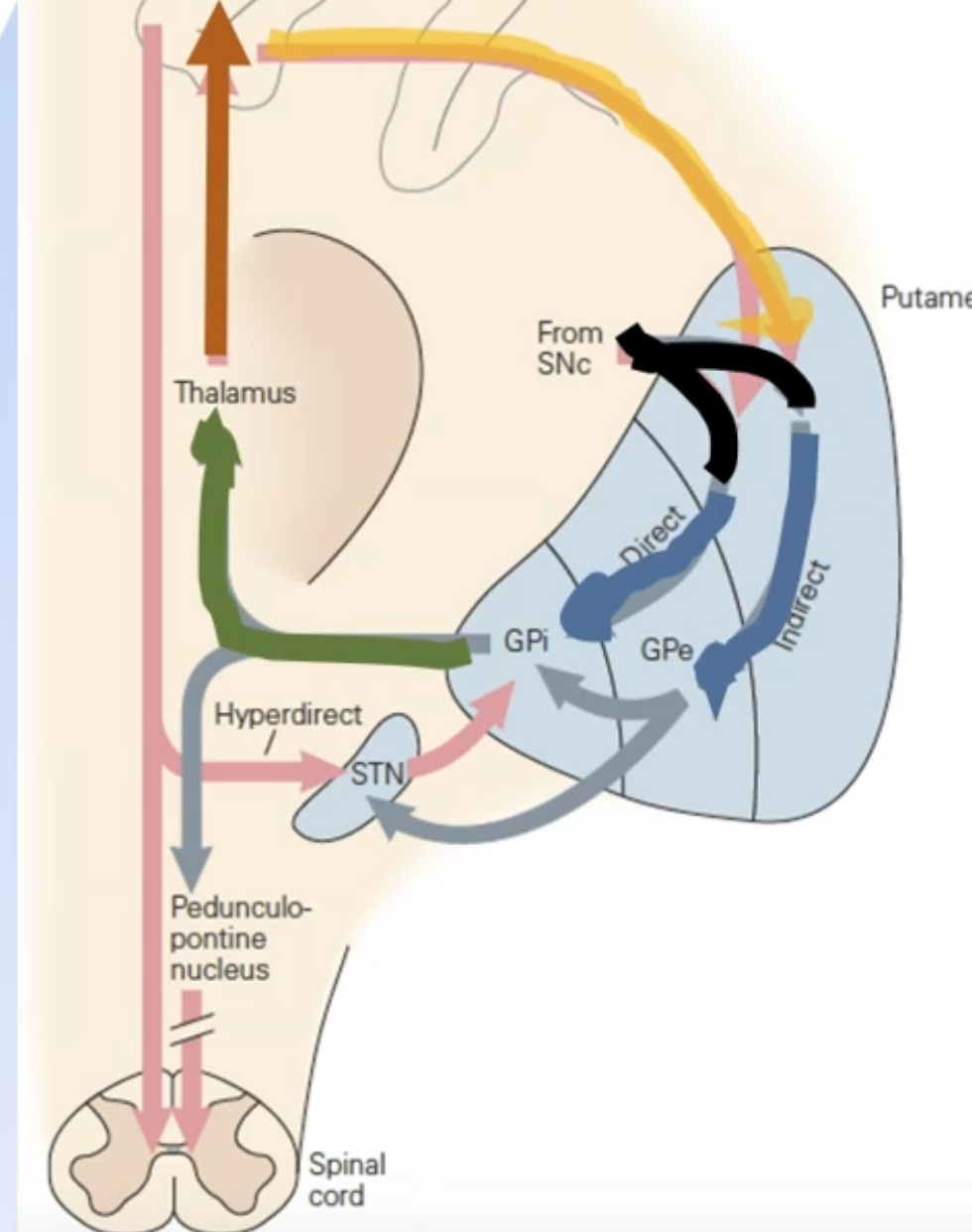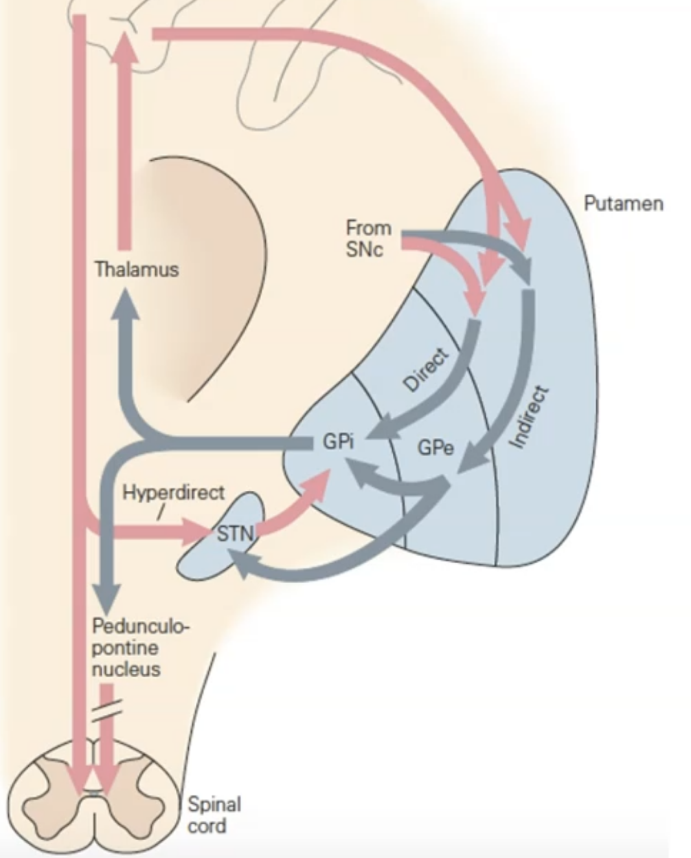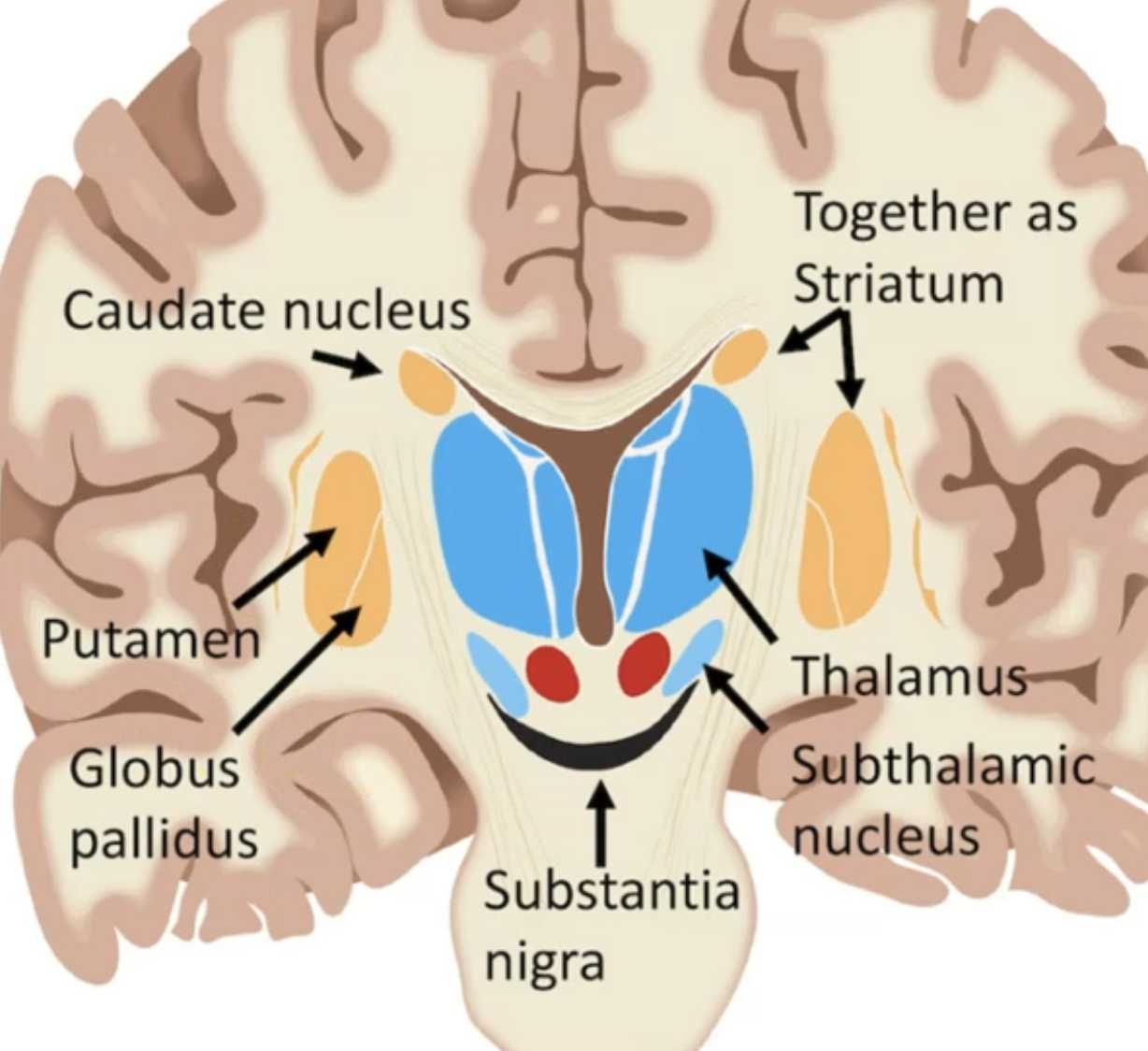 Serie de núcleos, estructuras interconectadas con funciones motoras y no motoras