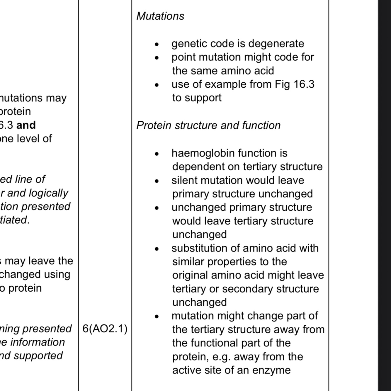 Levels of protein structure to explain how some gene mutations don’t effect haemoglobin