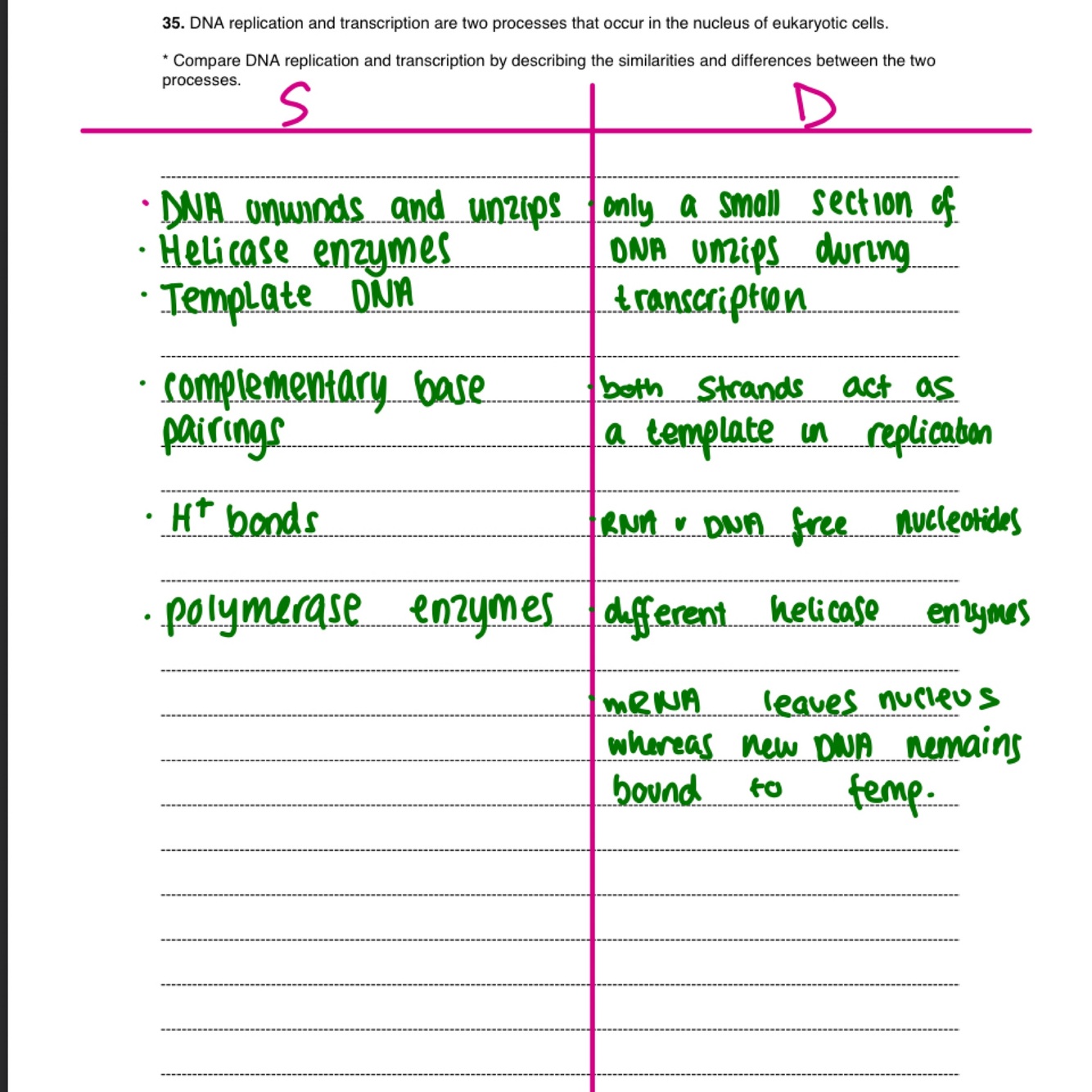 Transcription in the nucleus, production of mRNA, mRNA leaves the nucleus via nuclear pores and translation is at ribosomes tRNA in the ribosomes with specific amino acids binds to anticodons
