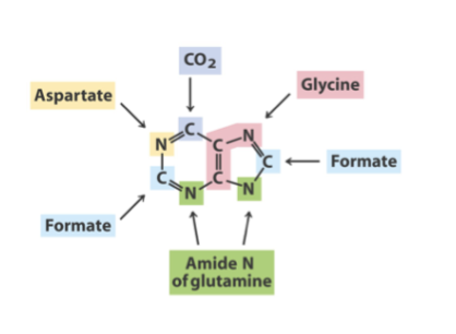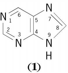 Tegn purinbasen, og angiv, hvor de enkelte atomer kommer fra.