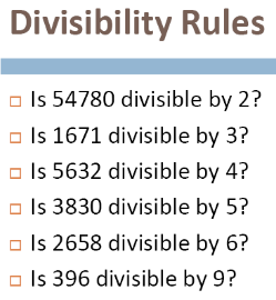 4: Divisible by 2 twice, or the last 2 digits are divisible by 4
