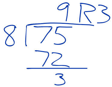 What is the remainder for 75/8?