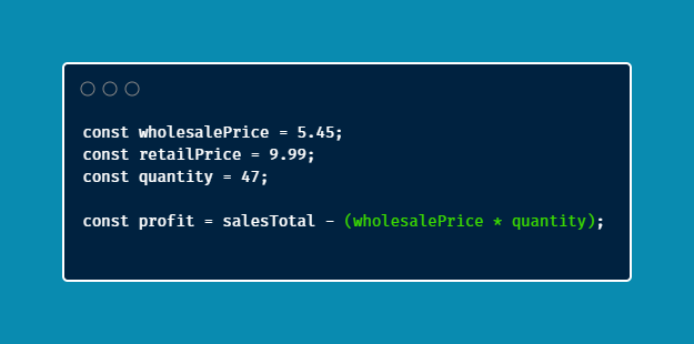 How would the profit be calculated using a new variable named const profit?