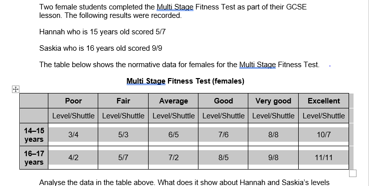 Award up to two marks for identifying Hannah’s and Saskia’s levels of cardiovascular fitness.