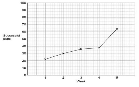 * Correctly labelled x axis (week), correctly labelled y axis (successful putts) (1)