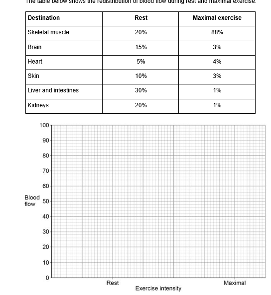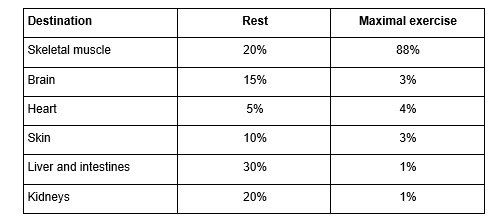 At rest the blood flow to the skeletal muscle is 20%. At rest the blood flow to the other organs is 80%.