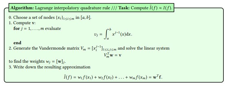 What is the algorthm to find produce a Lagrange interpolatory quadrature rule?