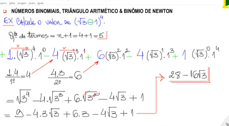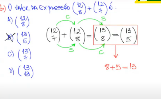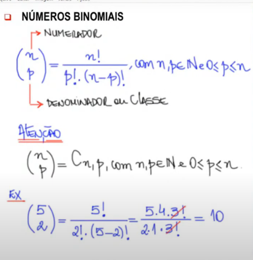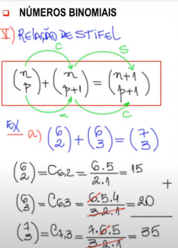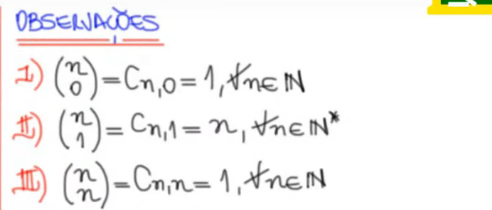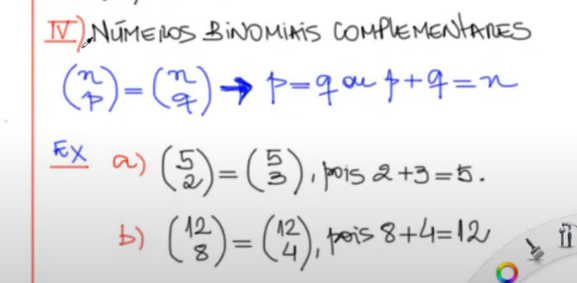 Dizemos que dois coeficientes binomiais são complementares se seus numeradores forem iguais e a soma de seus denominadores for igual ao numerador.