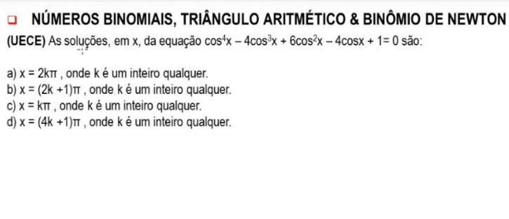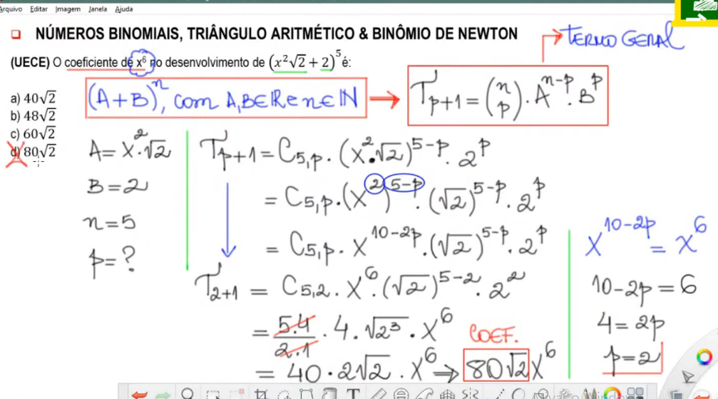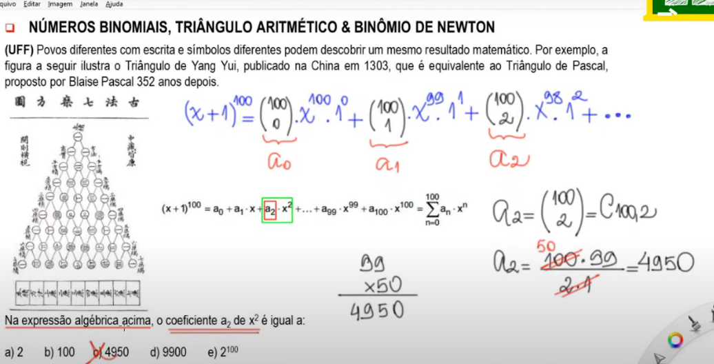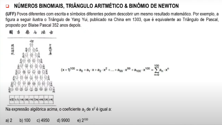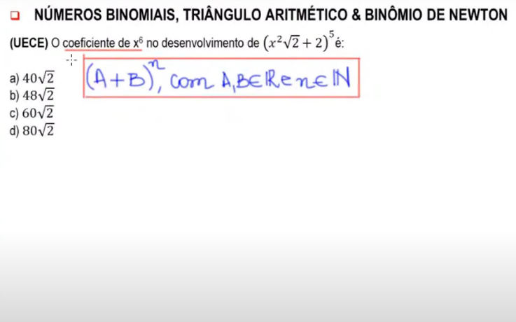 O coeficiente binomial, também chamado de número binomial, de um número n, na classe k, consiste no número de combinações de n termos, k a k. O número binomial de um número n, na classe k, pode ser escrito como: