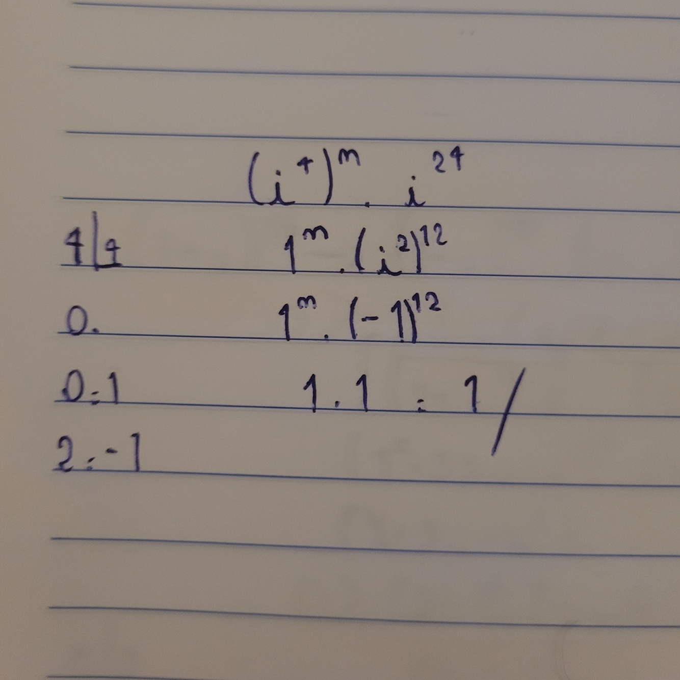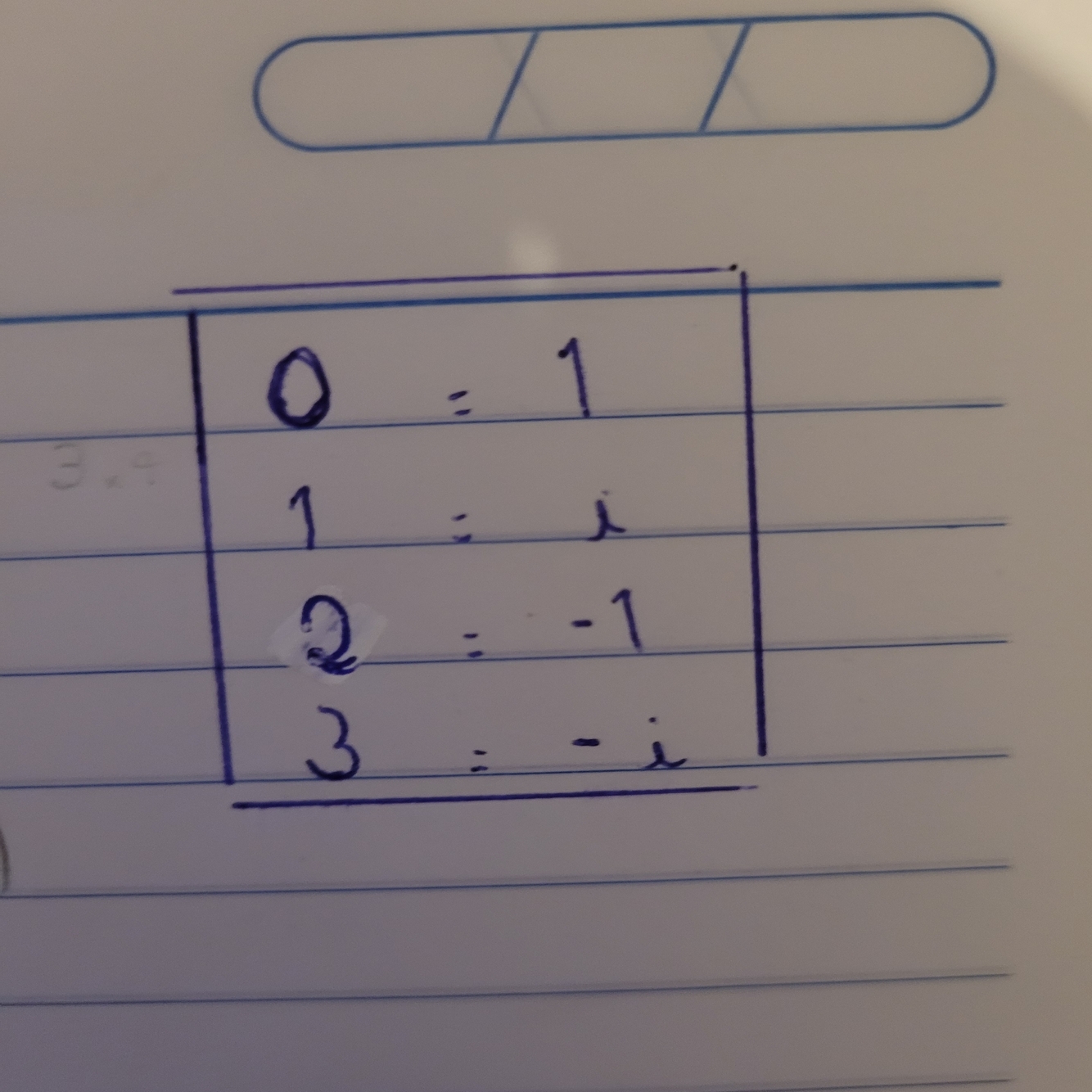 Divide o expoente por 4 e o numero q sobrar iguala à tabela