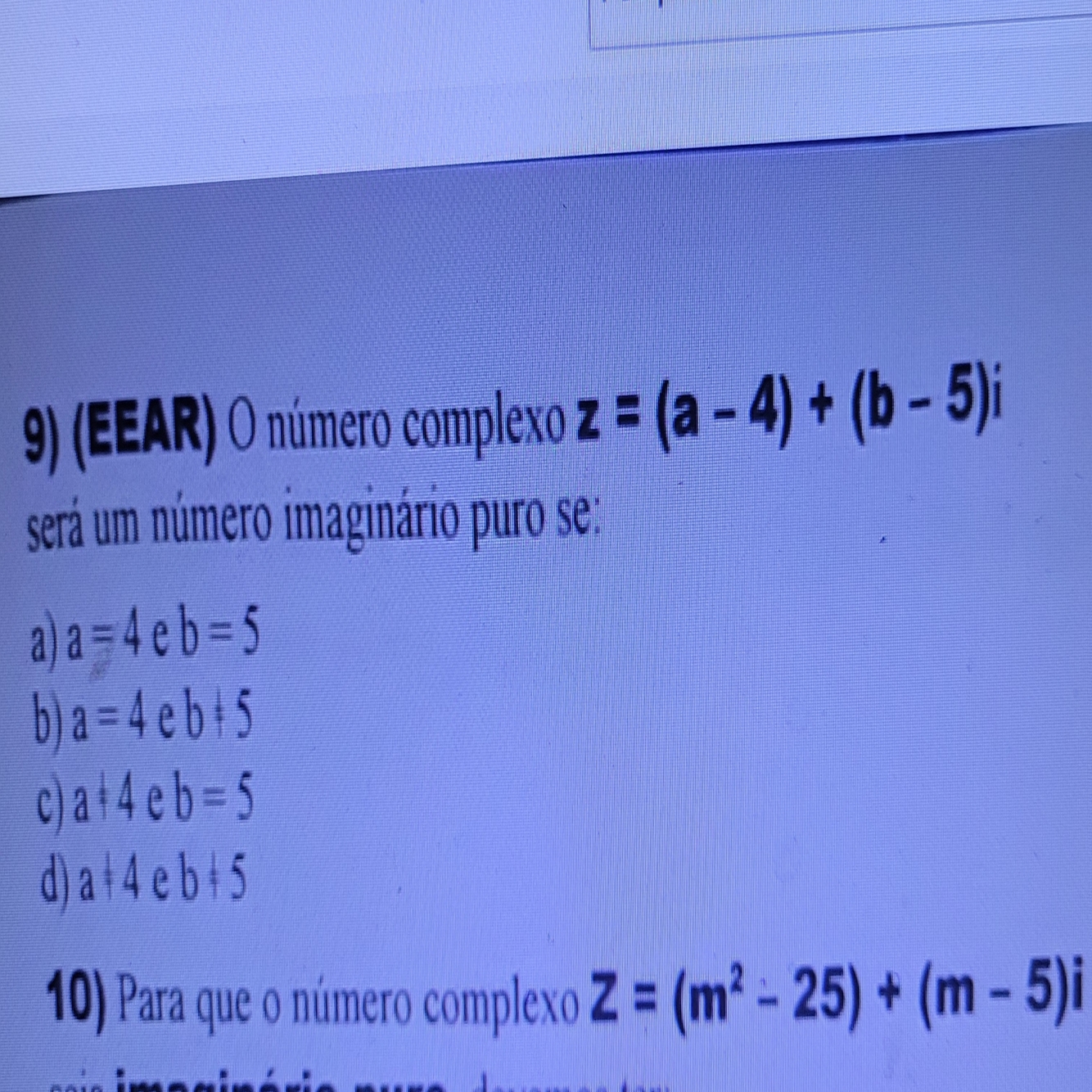 Para que um numero complexo seja imaginario puro: