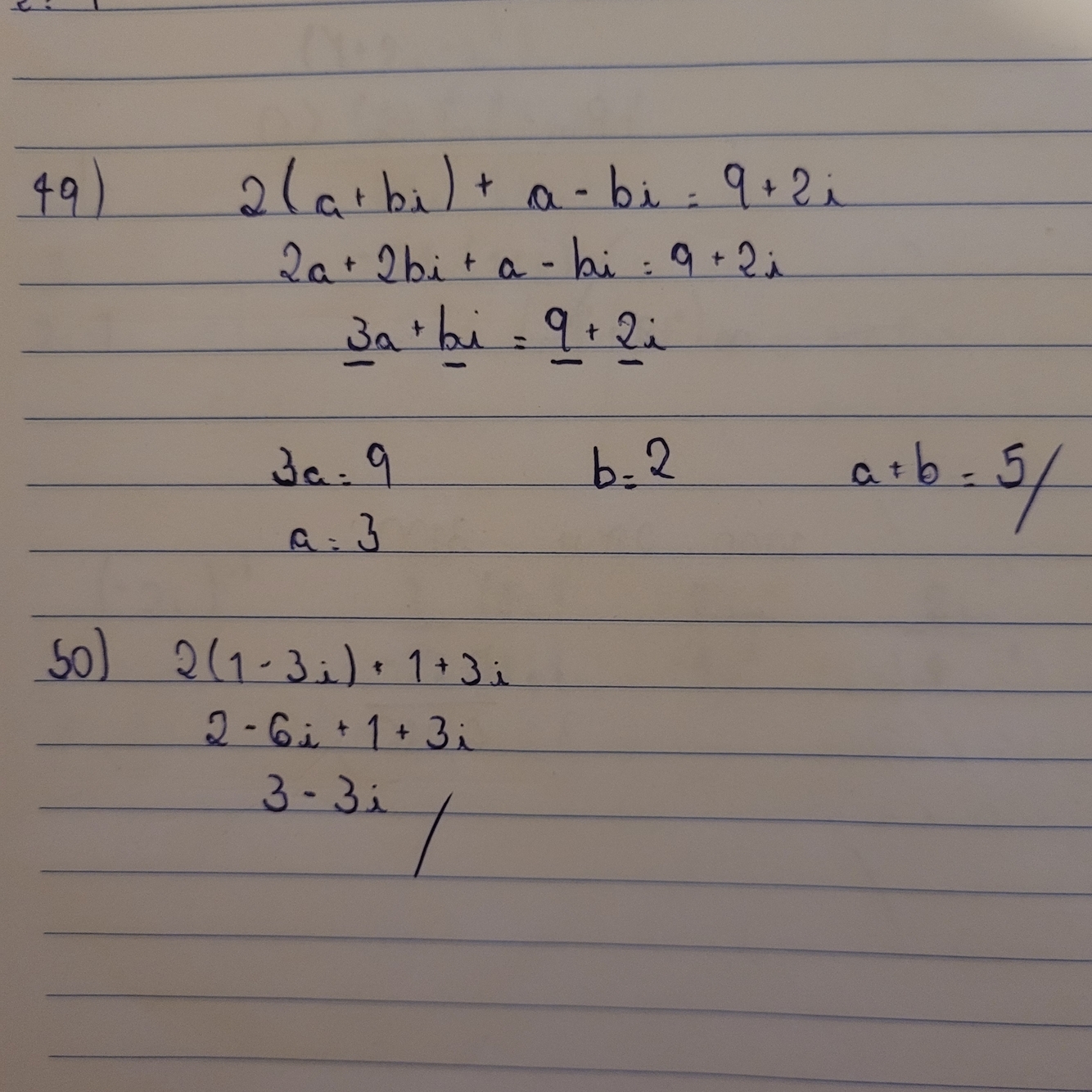 Soma ou subtrai a parte real pela real e parte imaginária pela parte imaginária