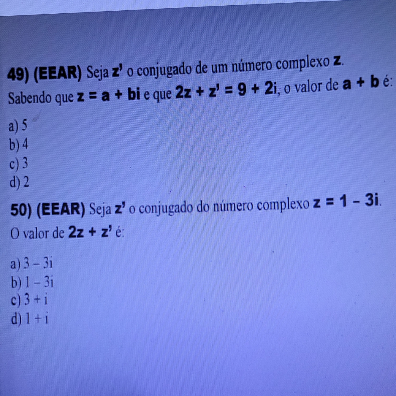 Para que um numero complexo seja real: