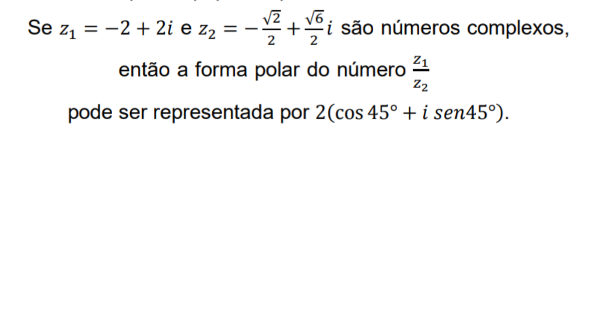 NC–Forma algébrica/polar(trigonometria)-V ou F?