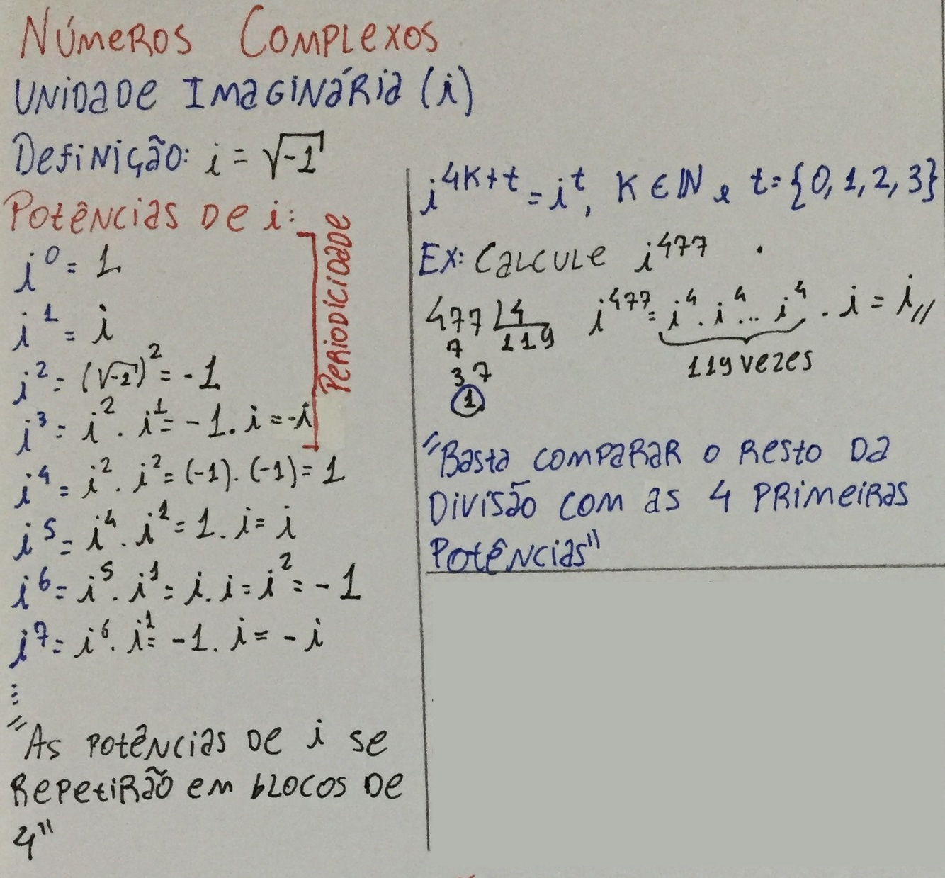 Explique o número imaginário e suas potências