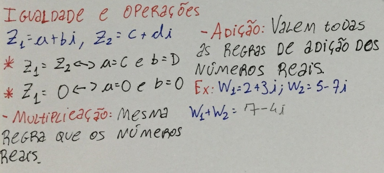 Explique a igualdade e as operações dos números complexos