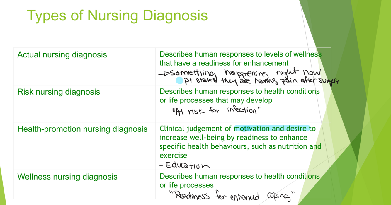 differentiate between the different types of nursing diagnosis