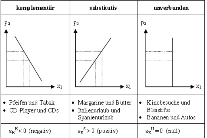 Ek = relative Mengenänderung Gut 1 / realtive Preisänderung Gut 2 = dx1/x1 / dx2/x2