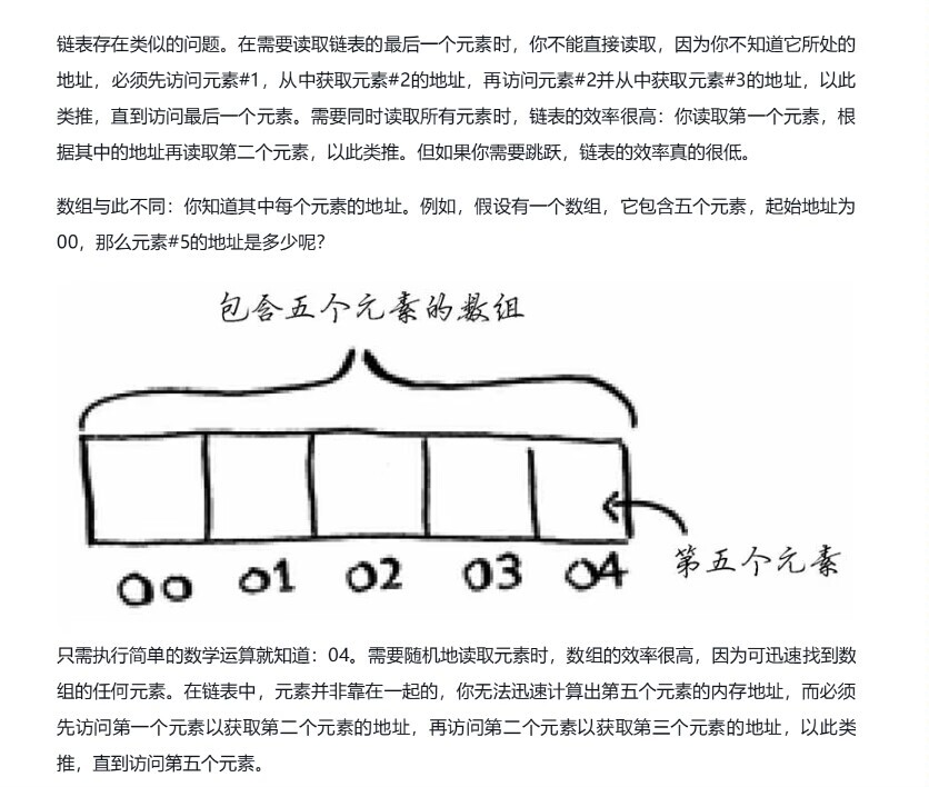 这就像你与朋友去看电影,找到地方就坐后又来了一位朋友,但原来坐的地方没有空位置,只得再找一个可坐下所有人的地方。在这种情况下,你需要请求计算机重新分配一块可容纳4个待办事项的内存,再将所有待办事项都移到那里。如果又来了一位朋友,而当前坐的地方也没有空位,你们就得再次转移!真是太麻烦了。同样,在数组中添加新元素也可能很麻烦。如果没有了空间,就得移到内存的其他地方,因此添加新元素的速度会很慢。一种解决之道是“预留座位”:即便当前只有3个待办事项,也请计算机提供10个位置,以防需要添加待办事项。这样,只要待办事项不超过10个,就无需转移。这是一个不错的权变措施,但你应该明白,