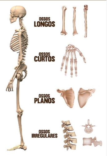 Os ossos são classificados em longos, curtos, planos, irregulares, Pneumáticos e sesamoides, de acordo com sua forma e função.