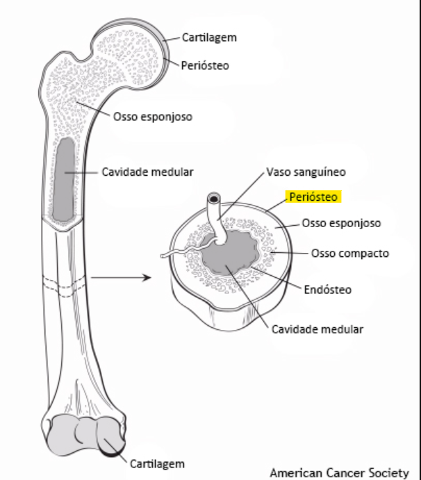 O crescimento em espessura do osso é função de qual estrutura?