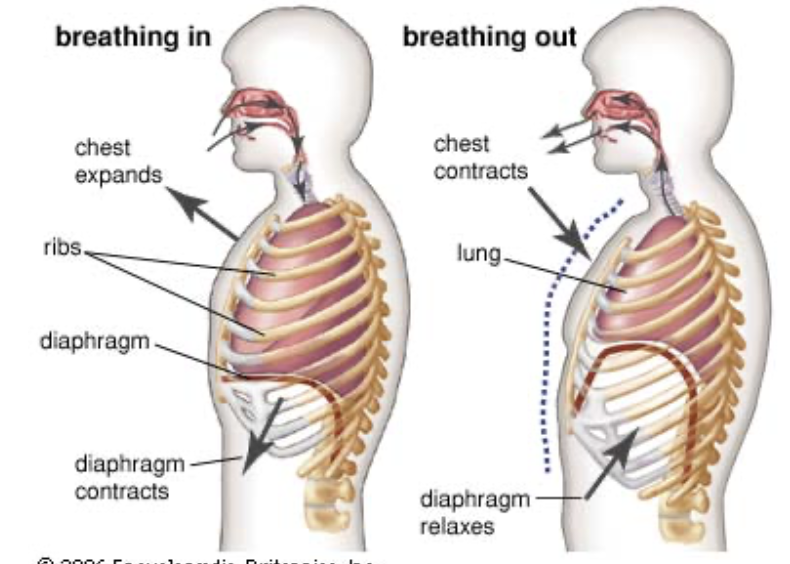 breathing in and out movement of the diaphragm