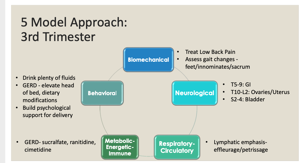 How do we approach OMT in pregnant pts with the five model approach?