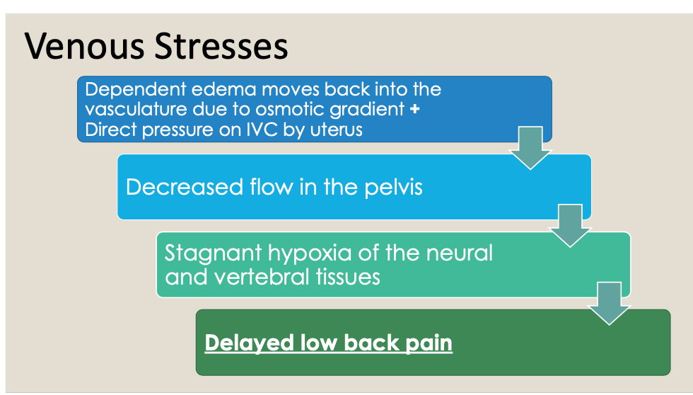 if they sleep on their back –> uterus compresses IVC –> venous congestion –> Stagnant hypoxia of neural and vertebral tissues at night