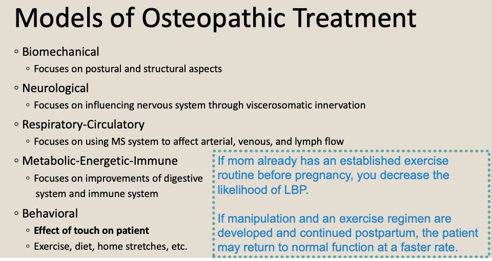 How do we approach OMT in pregnant pts with the five model approach?