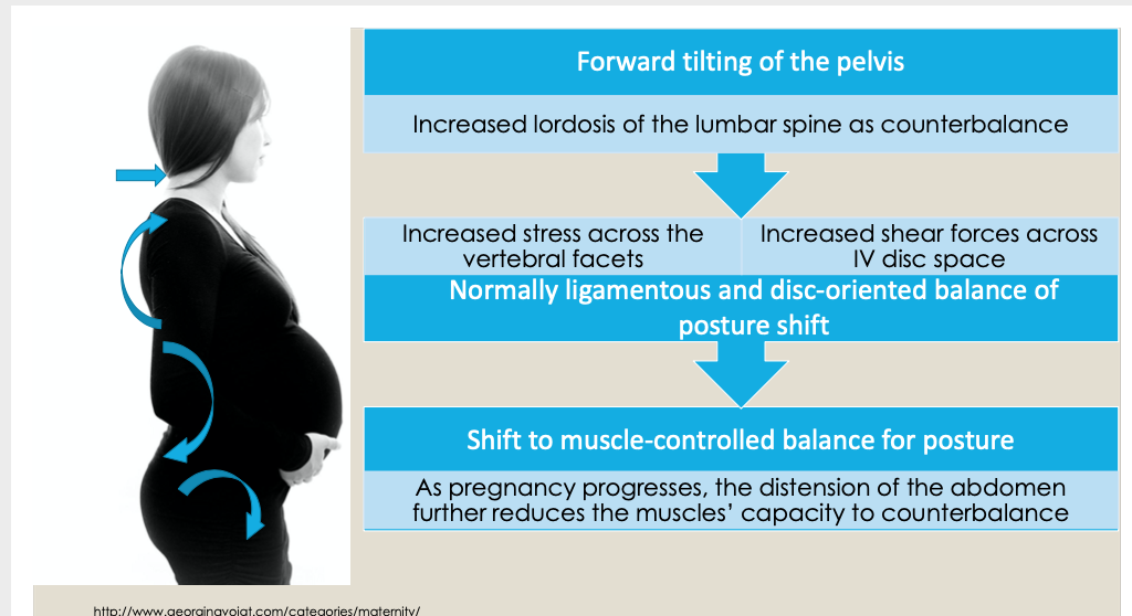if they sleep on their back –> uterus compresses IVC –> venous congestion –> Stagnant hypoxia of neural and vertebral tissues at night