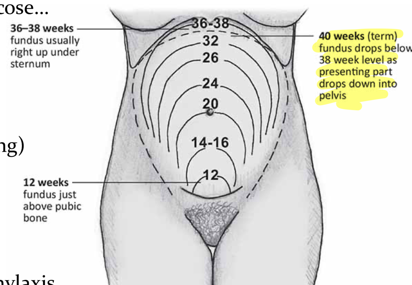 if fundal height is at level of umbilicus, how many wks gestational age in typical singleton pregnancy?