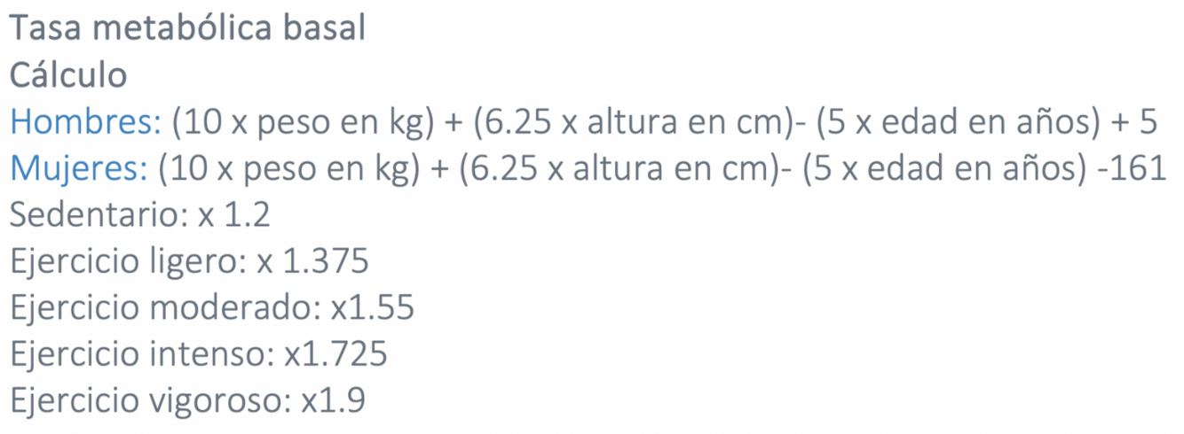 como calcular la tasa metabolica basal?