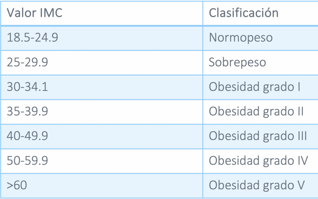 clasificacion de obesidad de acuerdo al IMC