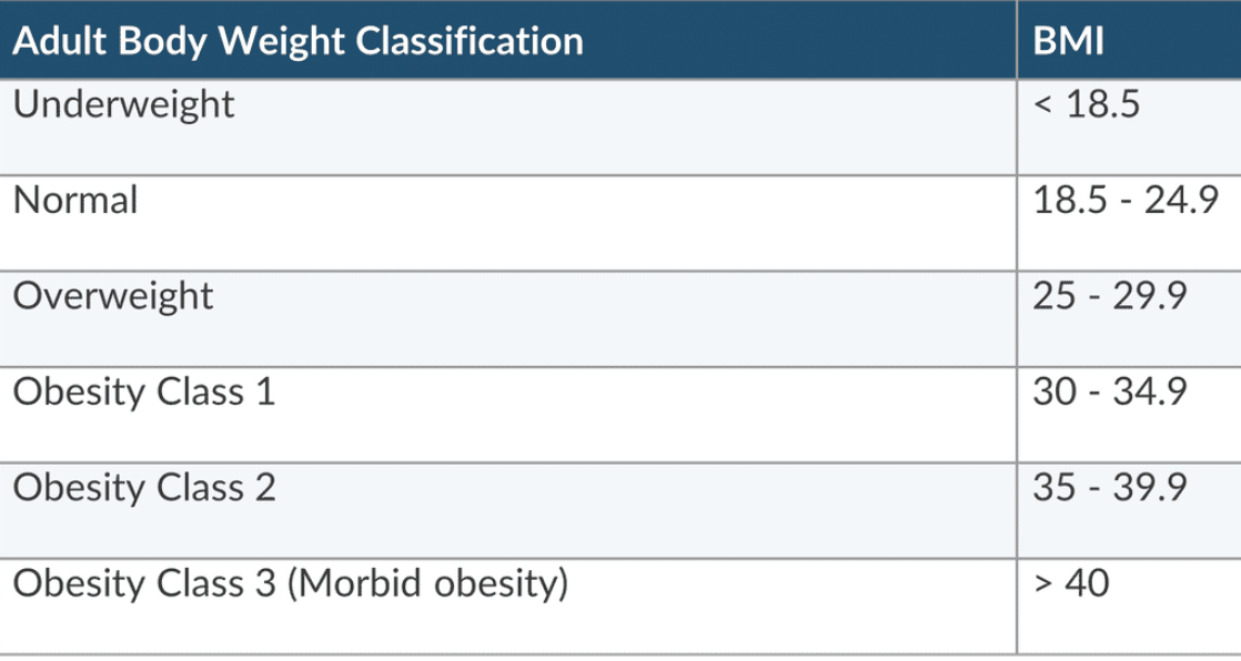 adult BMI classification