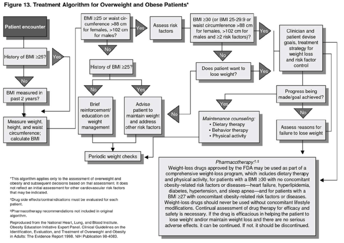 Medication along with diet and lifestyle changes may be appropriate for BMI >30.