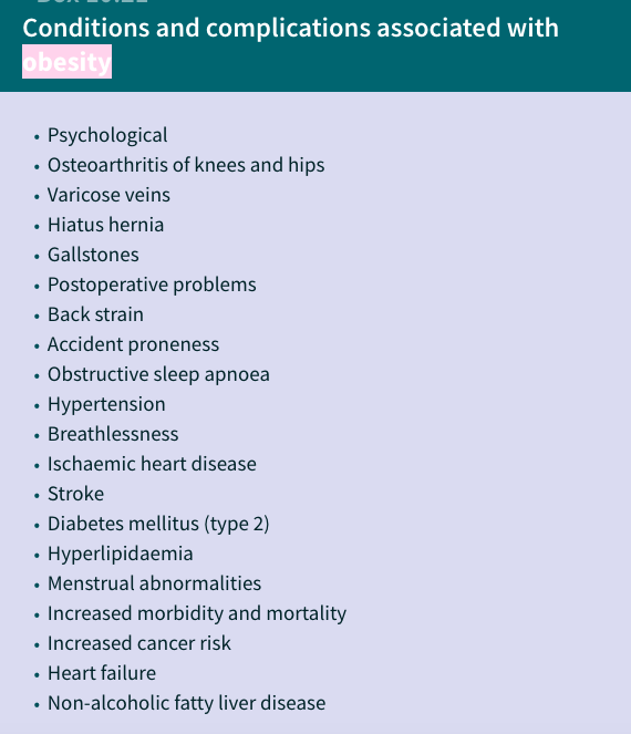 Obese patients generally have increased morbidity, mortality and increased risk of cancer (oesophageal and renal)