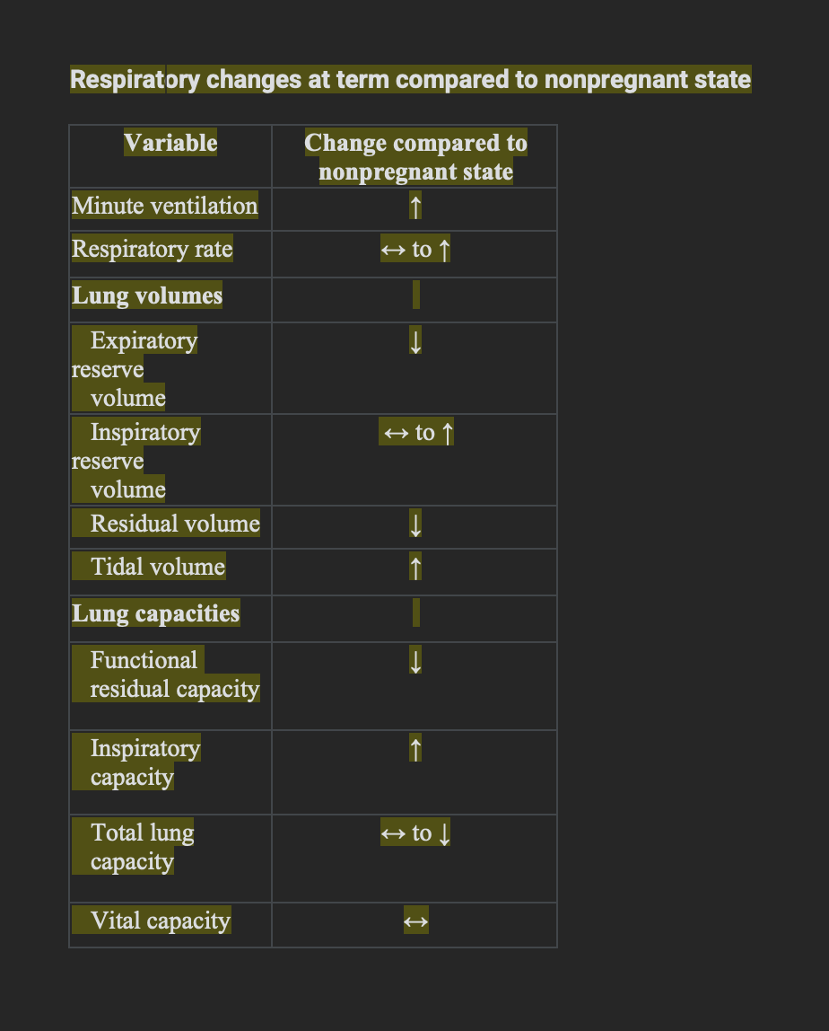 Many respiratory changes occur in the obstetric patient due to both anatomic and hormonal alterations.